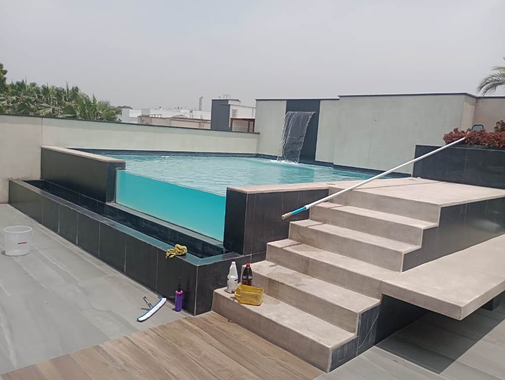 Diseño, construcción y mantenimiento de piscinas de concreto y fibra.
